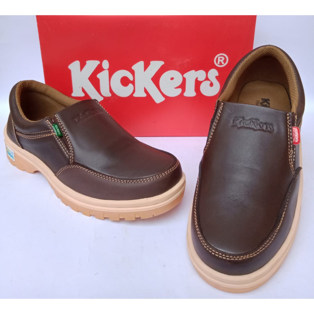 Sepatu Kickers Kulit Pria Asli Original Casual Santai Slip On Tanpa Tali