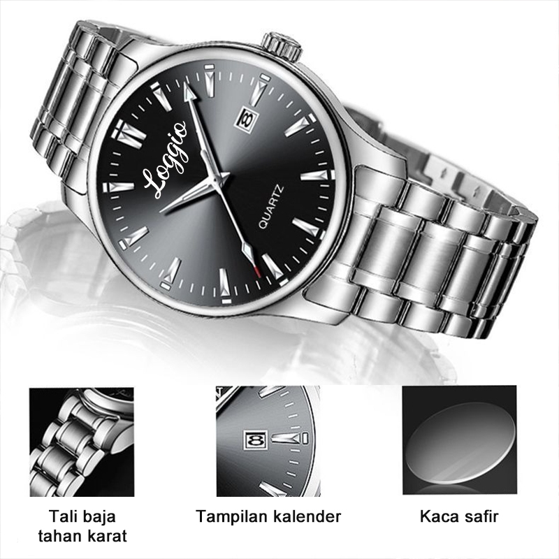 Jam Tangan Pria Loggio Anti Air Original Bisnis Fashion Mewah Stainless Steel Quartz Watch