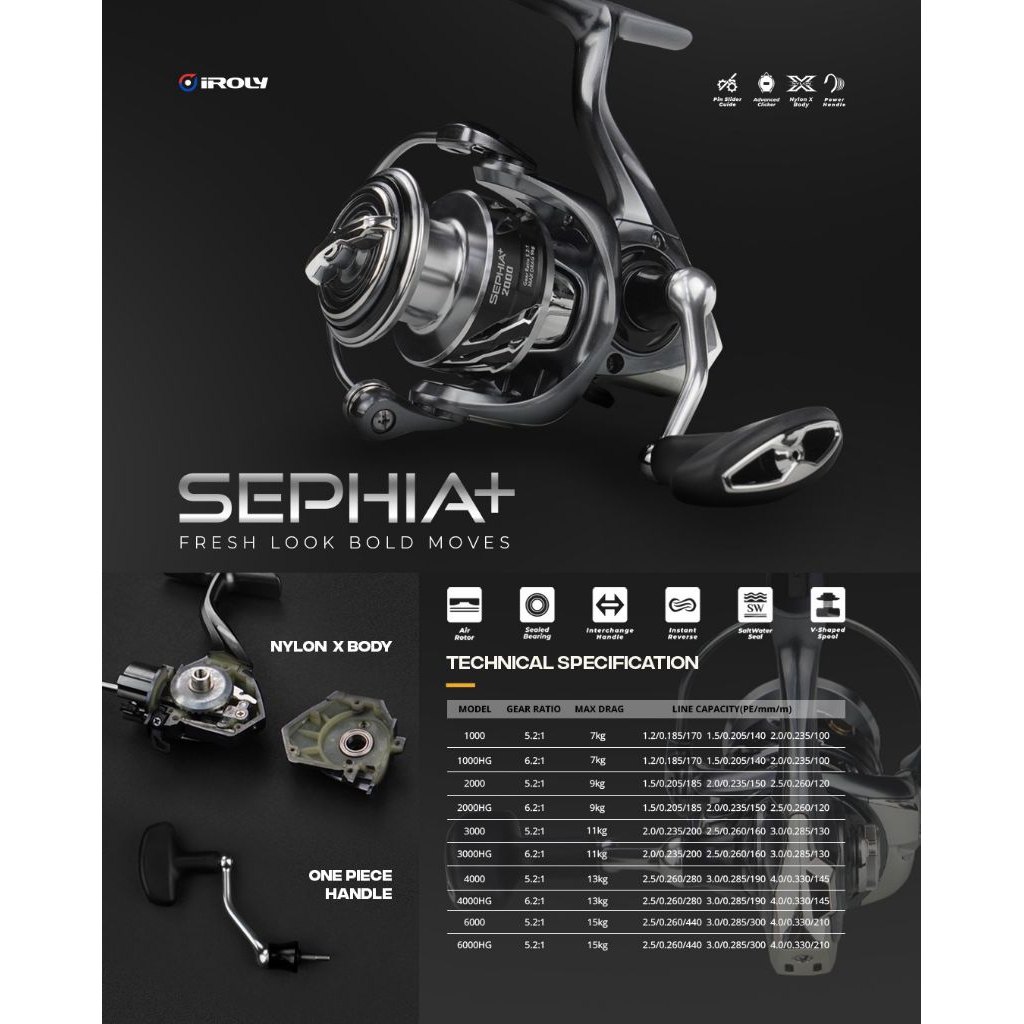 Reel Iroly Sephia+ Power Handle SW Silver/Black