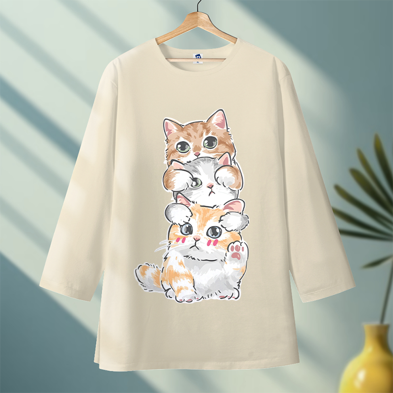 Louis - Tshirt Kaos Oversize Lengan 7/8 Gambar Cat Cute Bahan Cotton