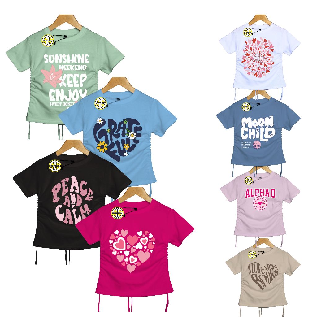 Kaos Crop Top Anak Perempuan 1-12 Tahun Croptop Kerut
