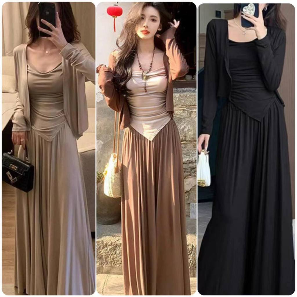 Dress Smile Oneset Wanita Autumn Suit Setelan Knit Sexy Casual Basic Stretch M623