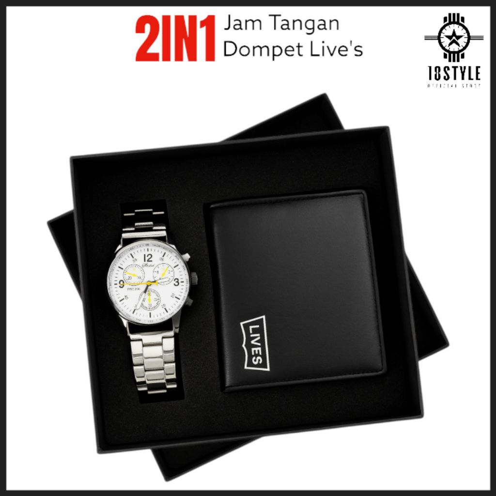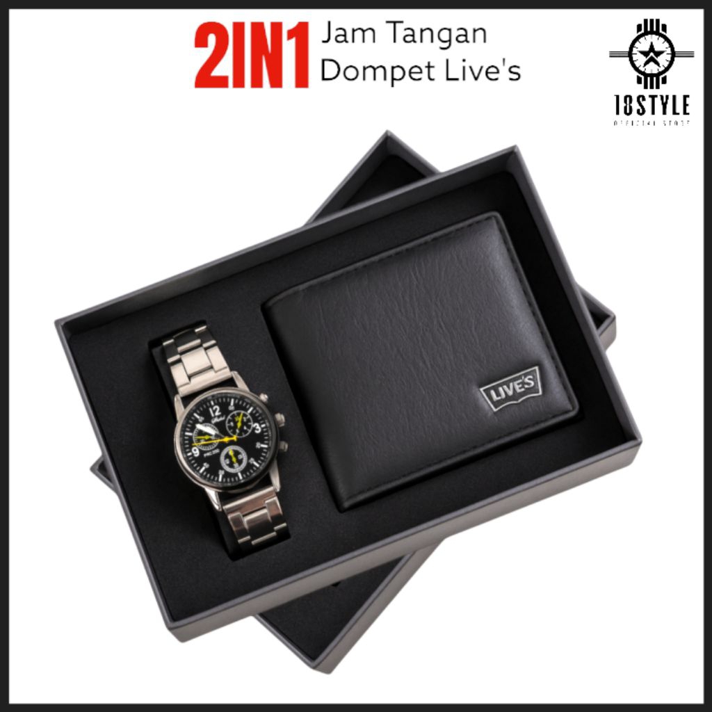 PEKET HEMAT 2IN1 DOMPET LIPAT PRIA KULIT PU GRATIS JAM TANGAN RANTAI IMPORT