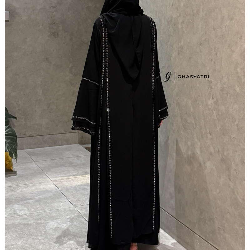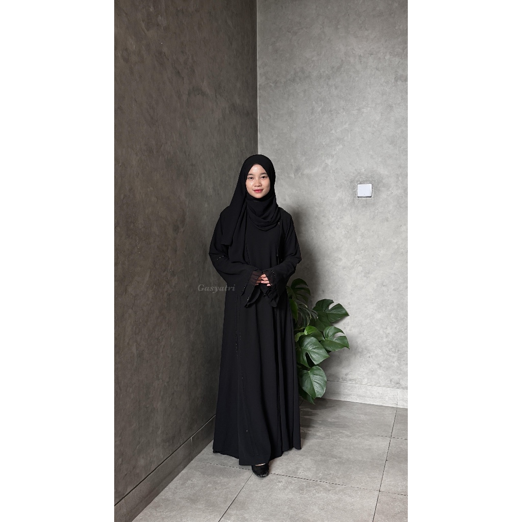 Abaya Gasyatri Turkey Syar'I Hitam Jetblack Mix Ciffon Umroh Akad Payet Mata Mewah Zavieer