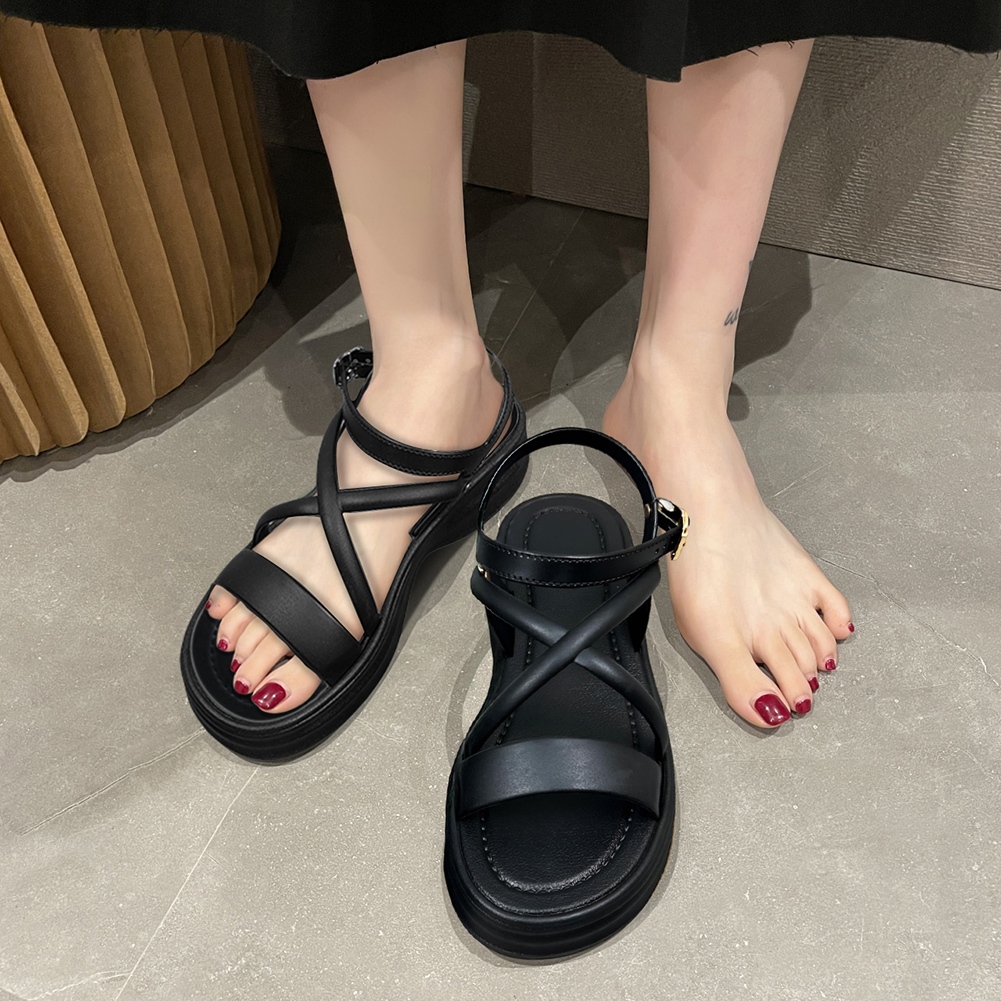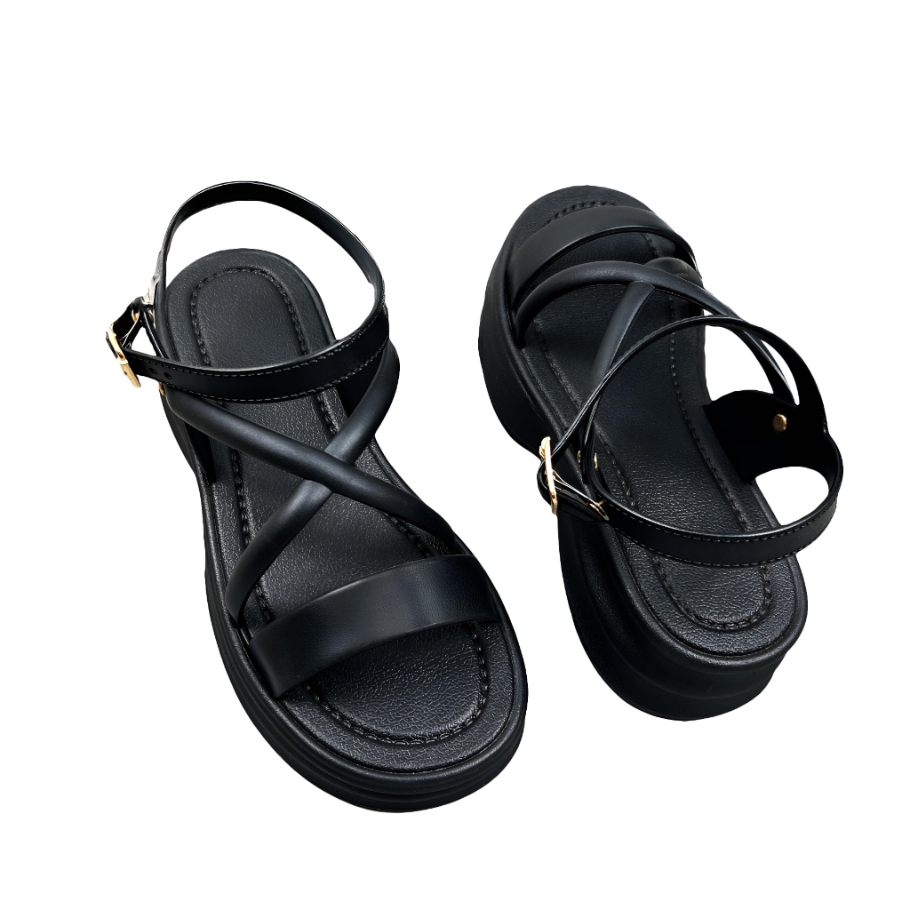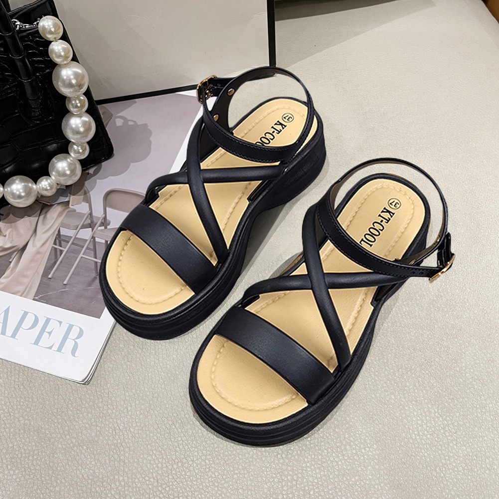 Sandal Wanita Wedges Model Tali Silang Hak Tinggi Gaya Fuji Kekinian Bahan Premium Uk 36 40