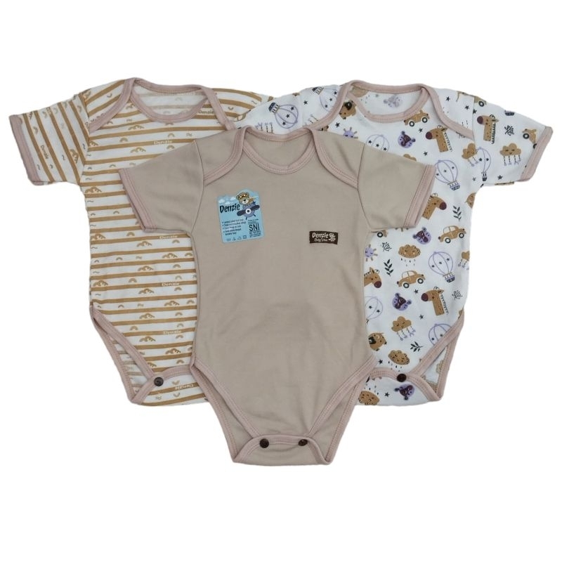 Jumper Bayi Bodysuit 3Set Baru Newborn Lahir 0 6 Bulan Motip Awan, Karakter Dan Polos