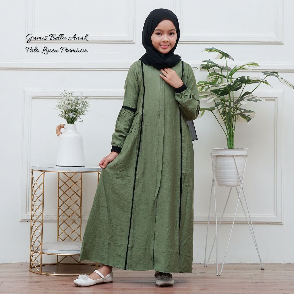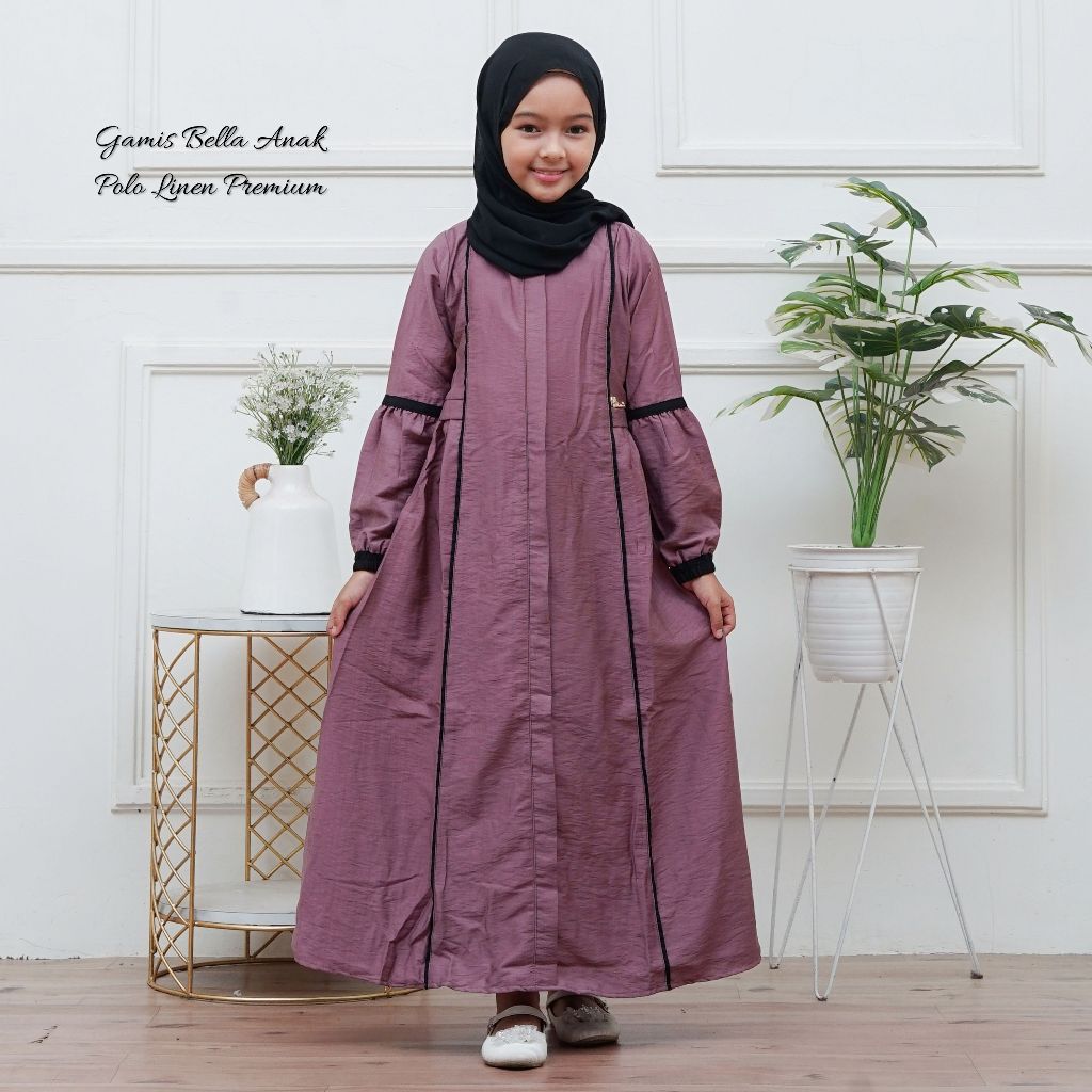 Gamis Muslim Anak Perempuan Polo Linen Premium By Bella