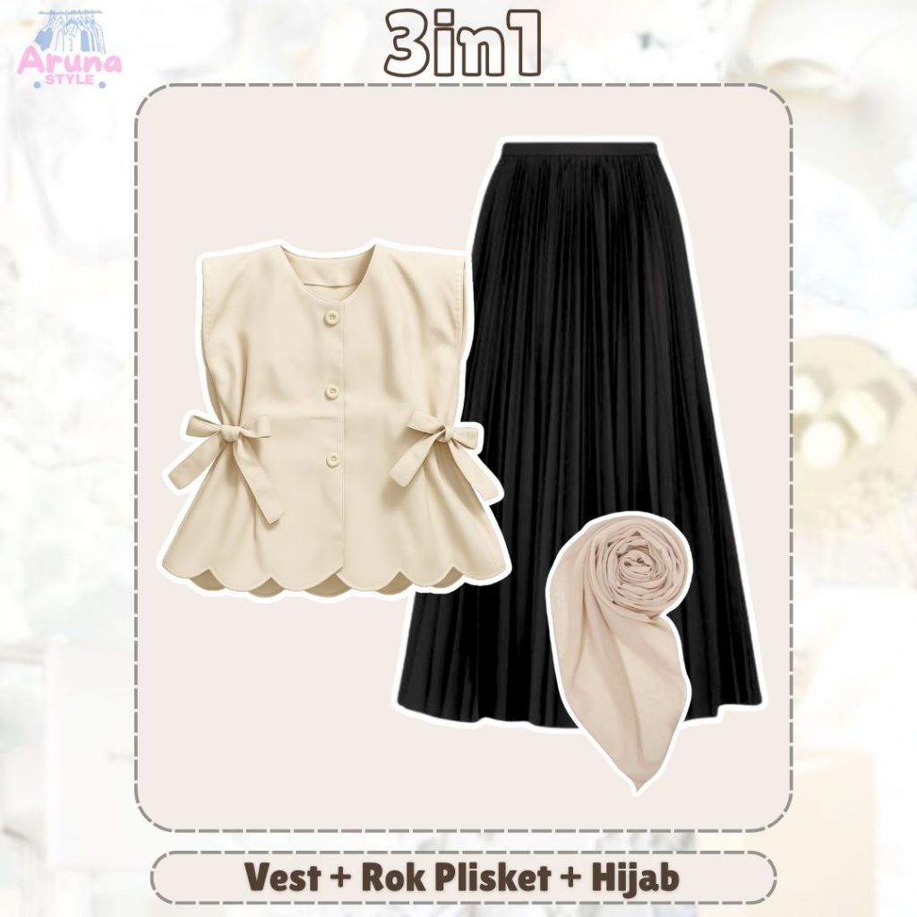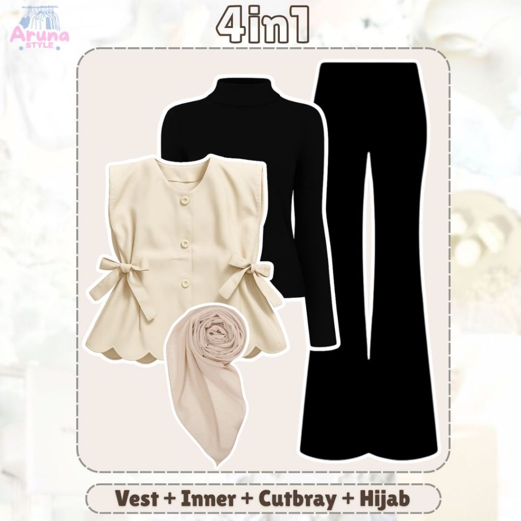 Setelan Remaja Kekinian Vest Cherish, Inner, Cutbray, Bella Square One Set Cewek Masa Kini AS4V