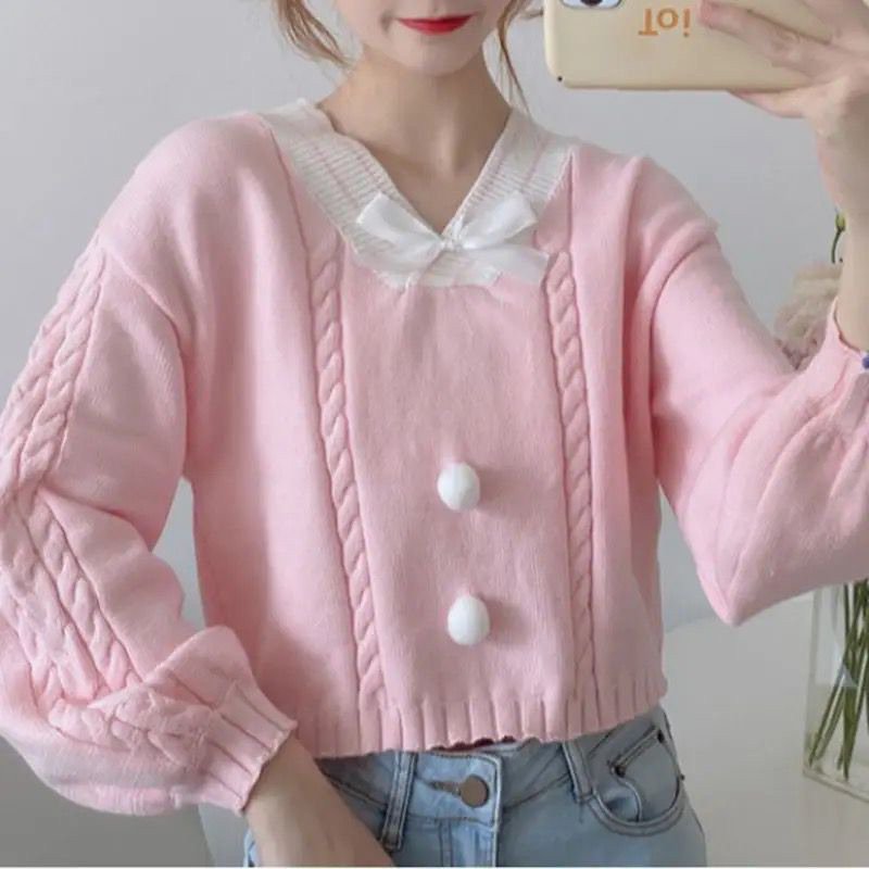 Sweater Kawai Vintage Pita Kerah V Premium Tebal