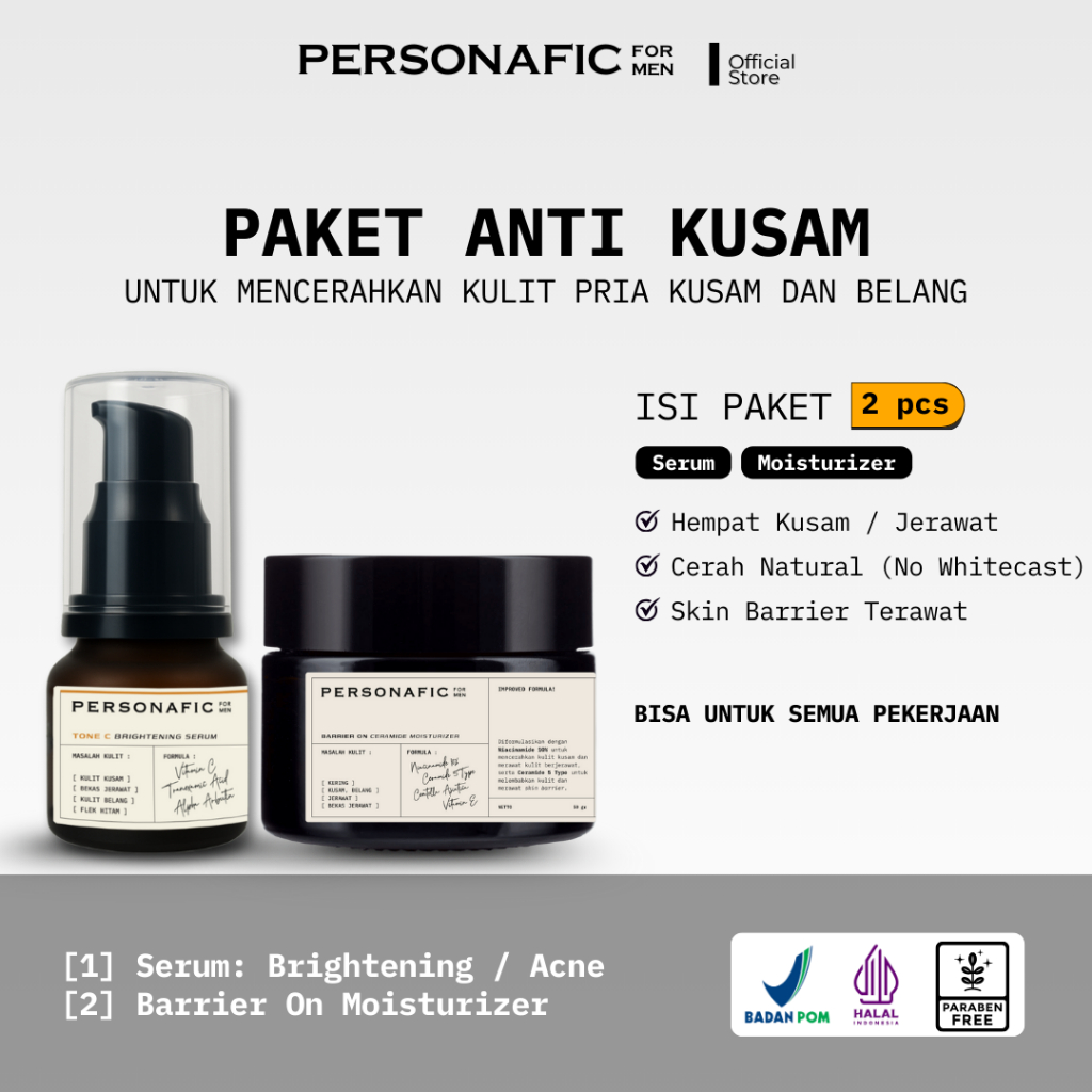 PERSONAFIC Anti Kusam Kit 2-in-1 Brightening Serum Anti Jerawat dan Moisturizer Pria Skin Barrier Niacinamide 10 PERSEN Face C