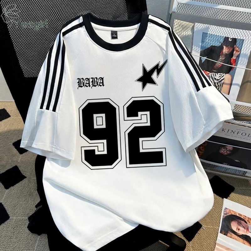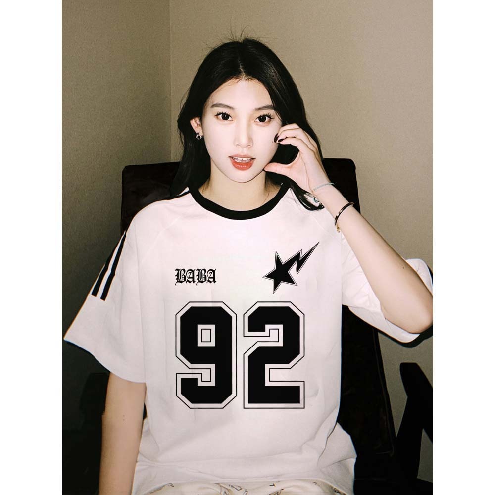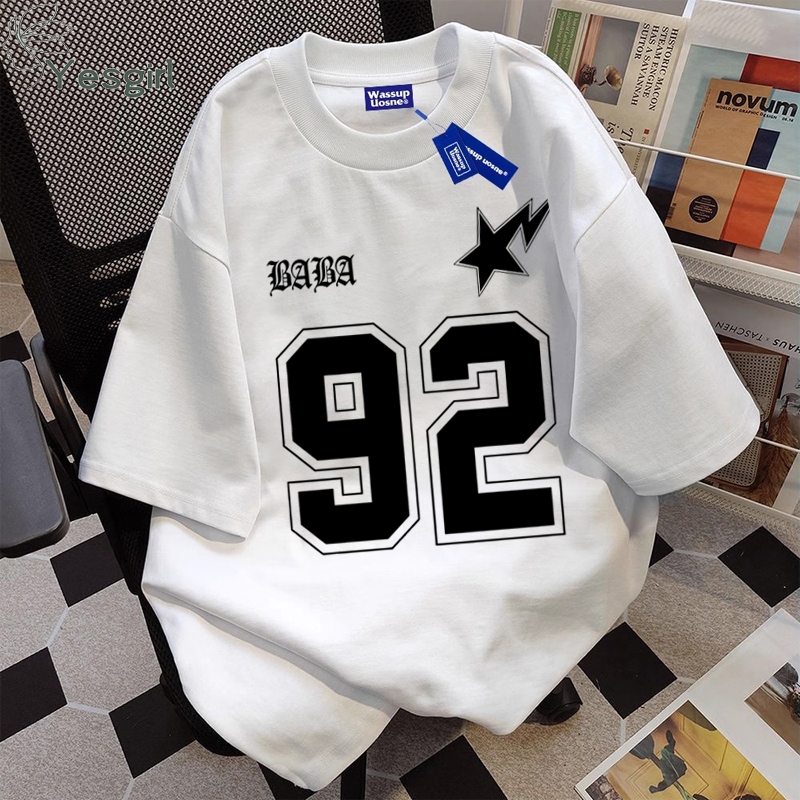 [] Yesgirl Baju Wanita Putih black Kaos Premium Lengan Pendek Oversize Kaos Motif Nomor 92 Atasan Wanita Kekinian Korean