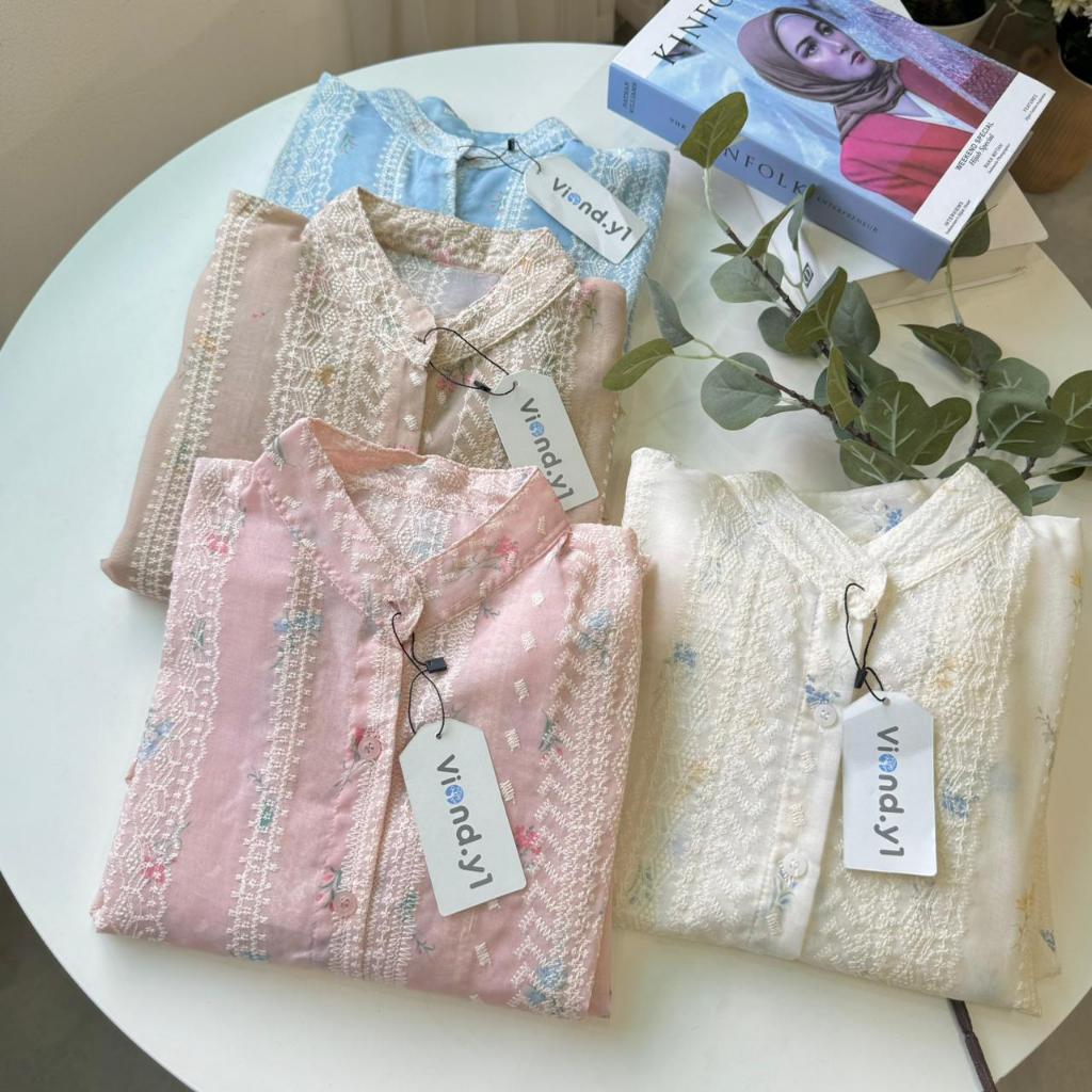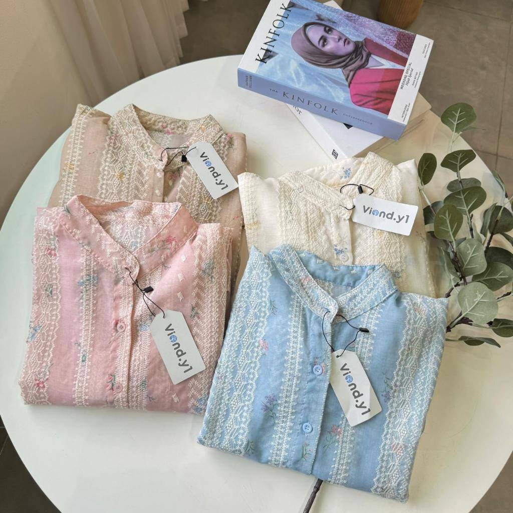 Nolana Kemeja Korea Katun Bordir Bunga Shirt Wanita Lengan Panjang E.228