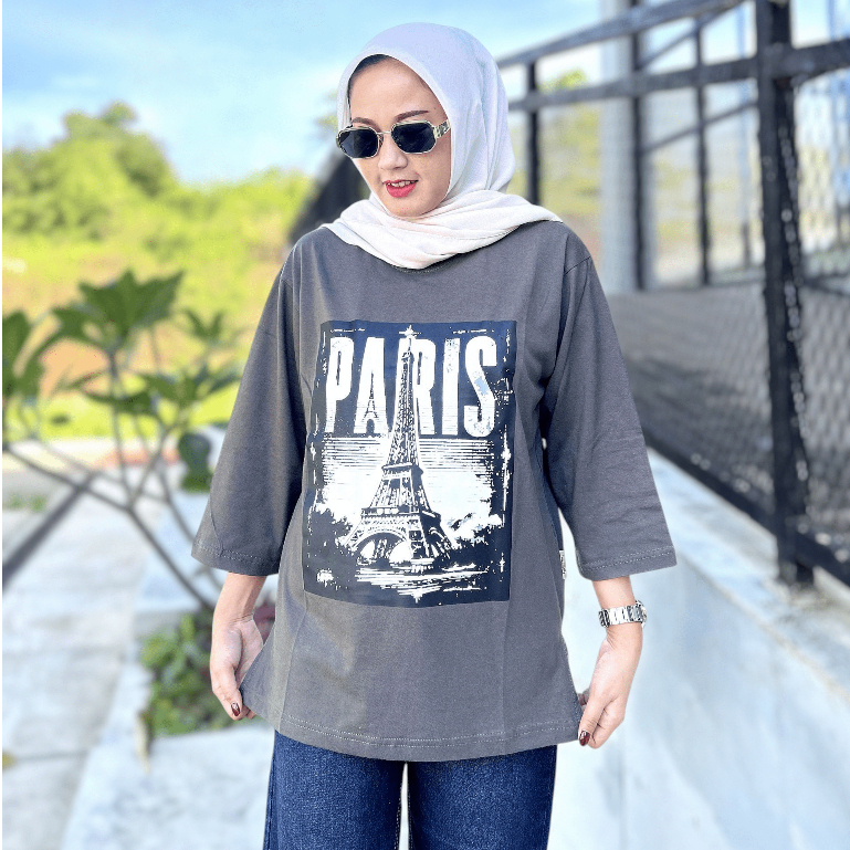 Oversize T-Shirt Premium with Slit Lengan 7/8 Kaos Wanita Terbaru Cotton Combed
