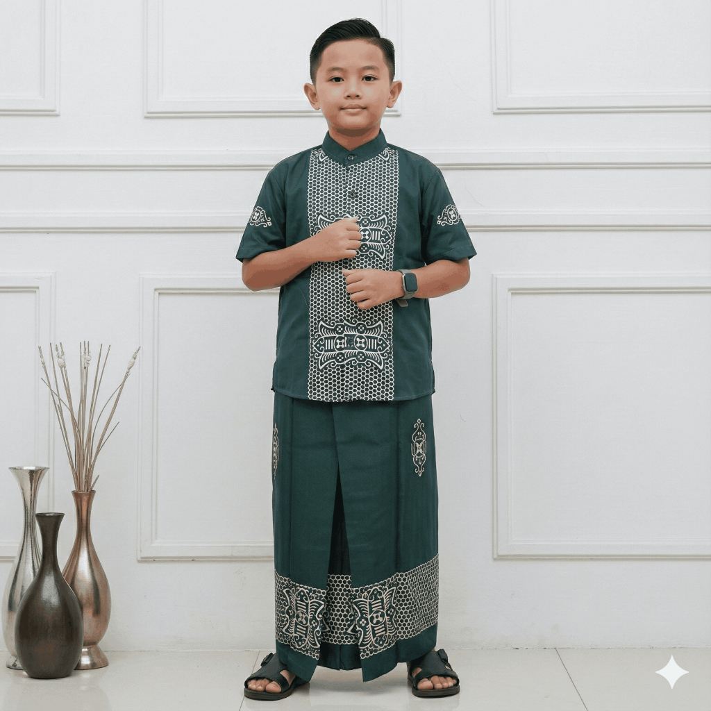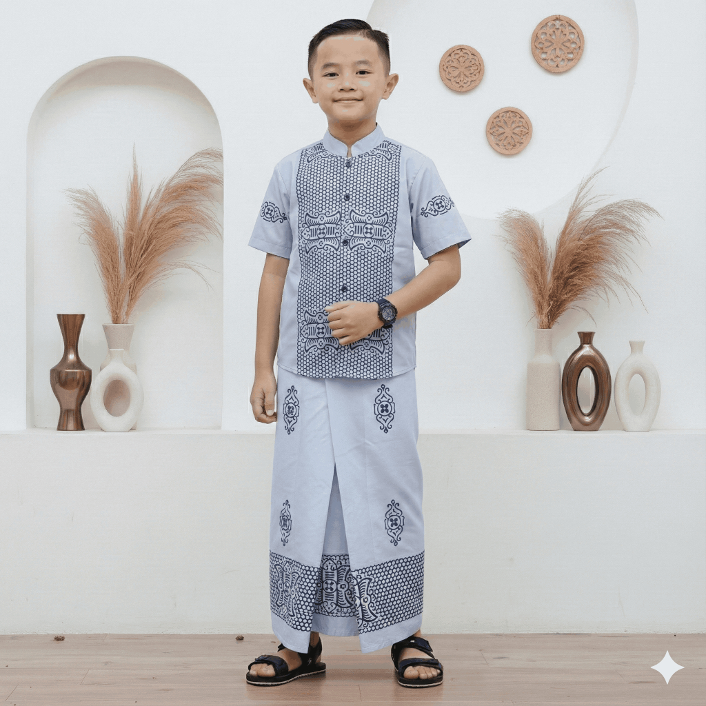 Setelan Sarung Koko Anak Motif Sarwon Lebaran 2026