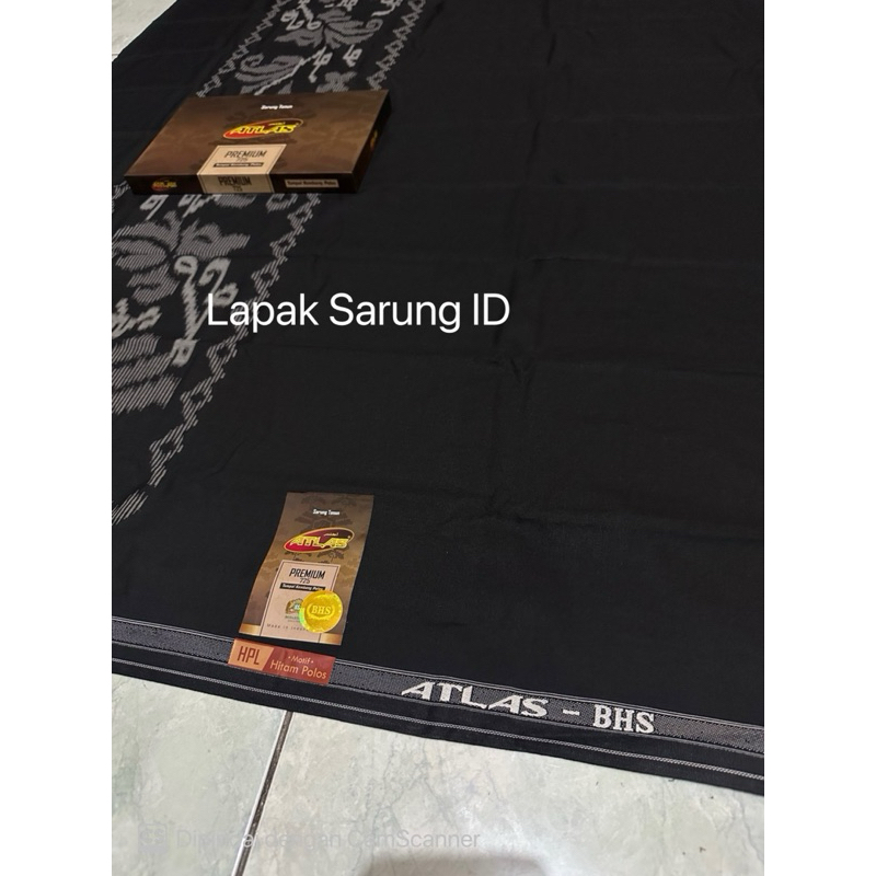 Sarung ATLAS Premium Hitam Polos | SARUNG ATLAS Premium 725 TUMPAL KEMBANG HITAM POLOS