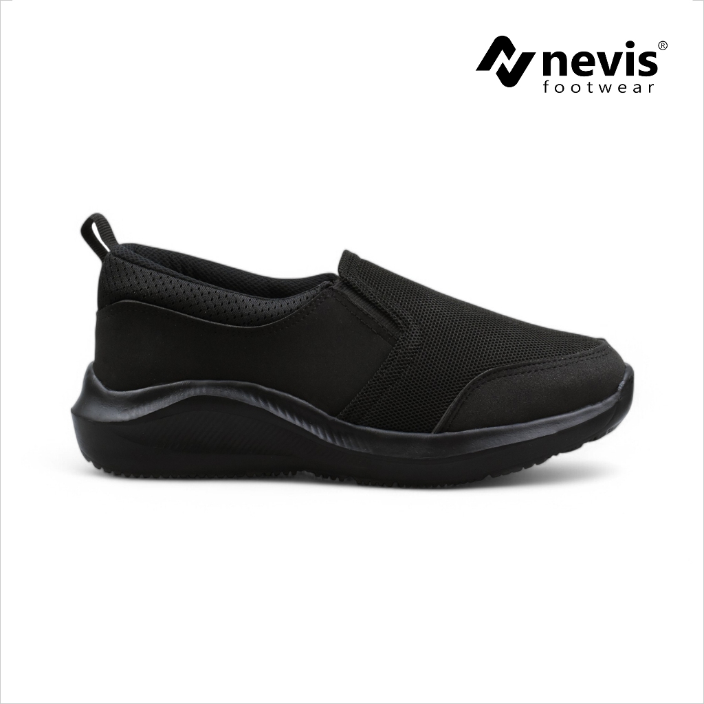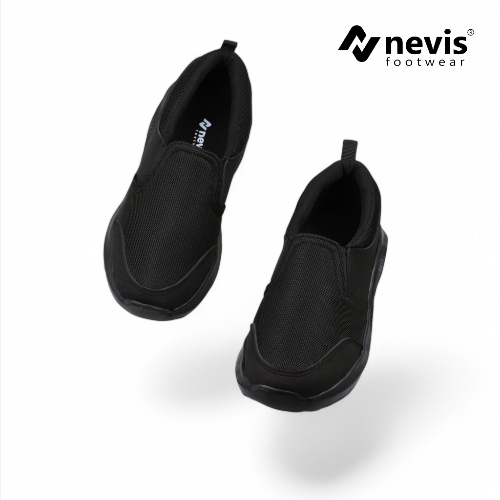 Sepatu Slip On Pria Nevis Jumbo Big Size 39-49 Nvs 87 Sekolah Kerja Casual Sneakers Full Black Hitam Polos Franco