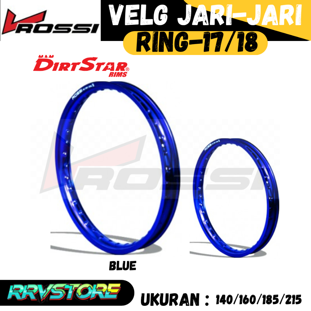 VELG JARI JARI ALUMUNIUM V-ROSSI 140 160 185 215 RING 17/18 HOLE/LUBANG JARI 32/36 VELG ALUMUNIUM VARIASI SUPERMOTO BIRU/HITAM/GOLD/SILVER ROSSI ORIGINAL VROSSI