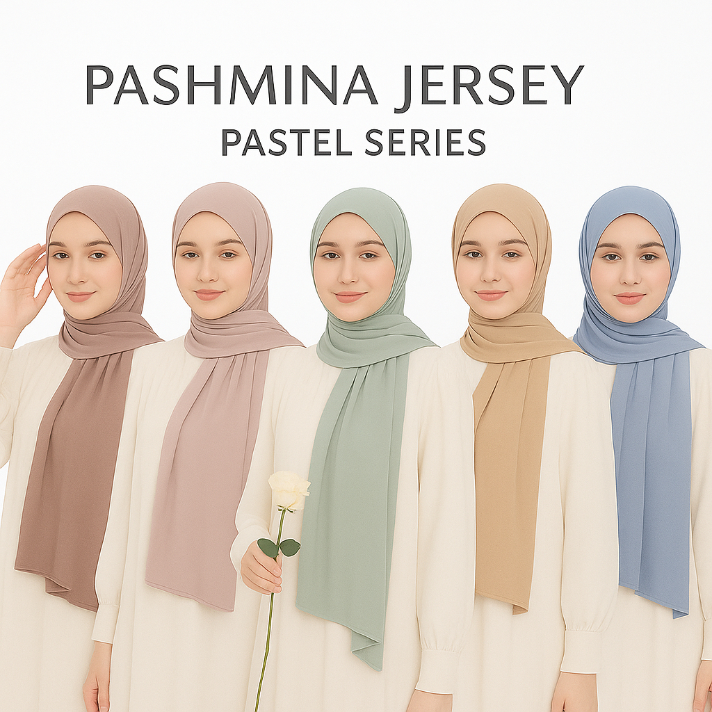 Paket 5 Pcs Pashmina Jersey Pastel – Hijab Lembut, Adem, Tidak Licin, Mudah Dibentuk