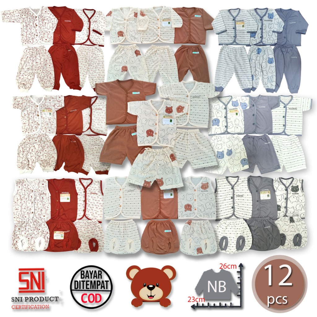 Setelan Bayi Baju Panjang Celana Newborn Baru Lahir Kado Murah Lucu Cowok & Cewek 0 6 Bulan Beruang Coklat Ekonomis Gift