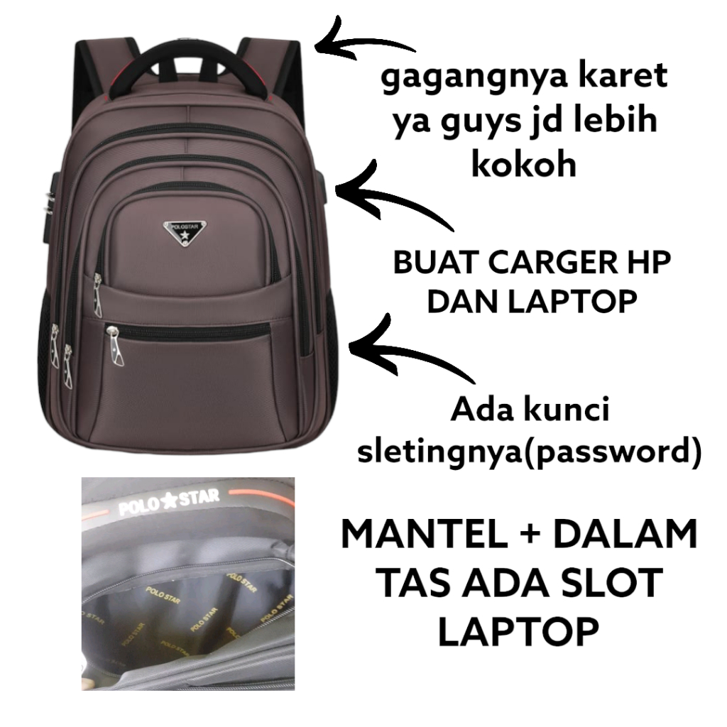 Tas Polo Star 16 Inch Tas Ransel Kerja Tas Sekolah Kunci Usb Port Raincoat