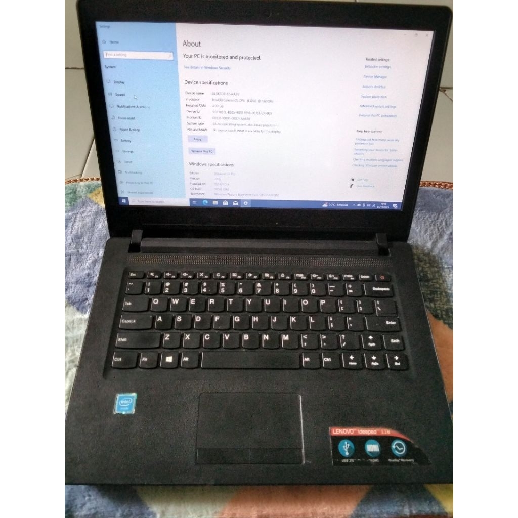 Leptop Lenovo Ideapad 110-14lBR Intel(R) Celeron(R) CPU N3060 1.60GHzRam 4GB DDR3