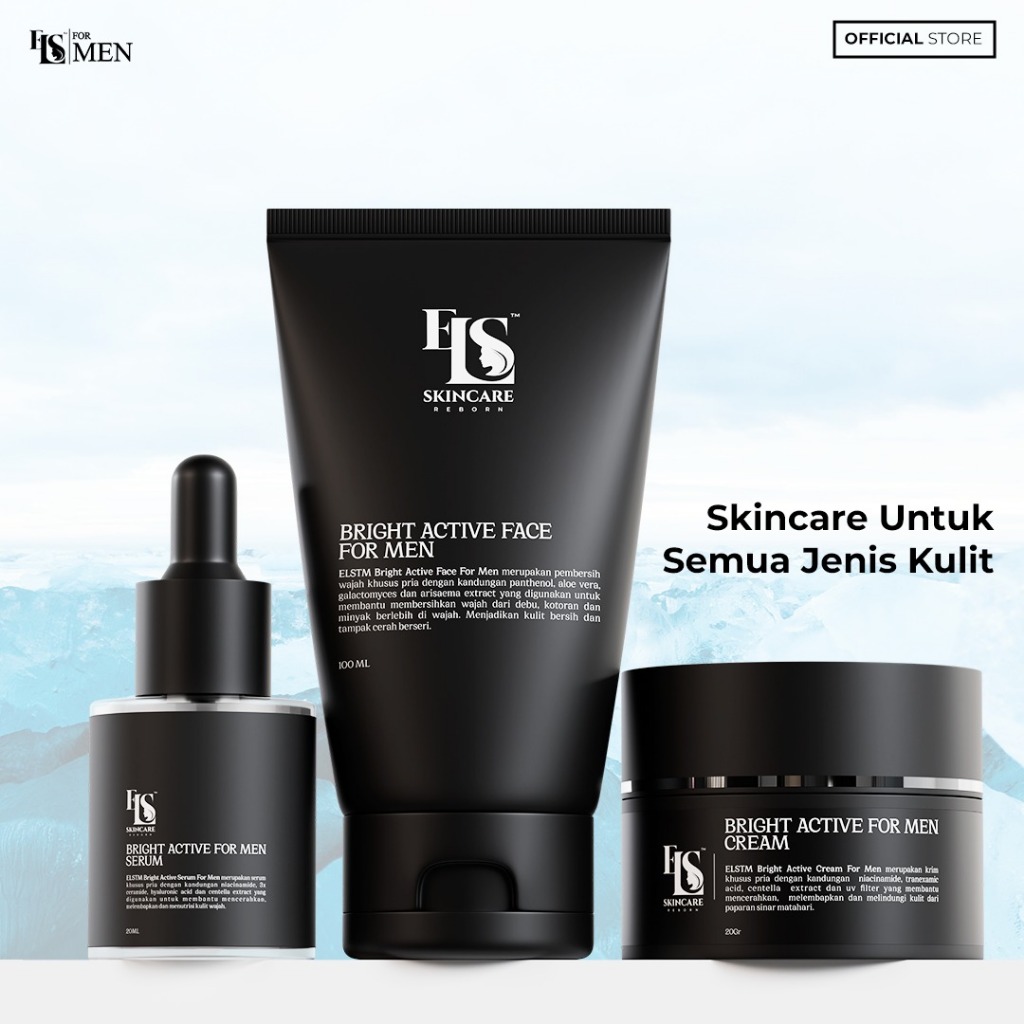 LS FOR MEN SKINCARE PAKET 保湿 BRIGHT ACTIVE SERIES PERAWATAN PRIA BPOM (ELSTM)