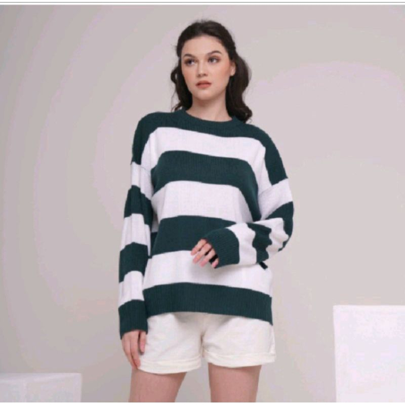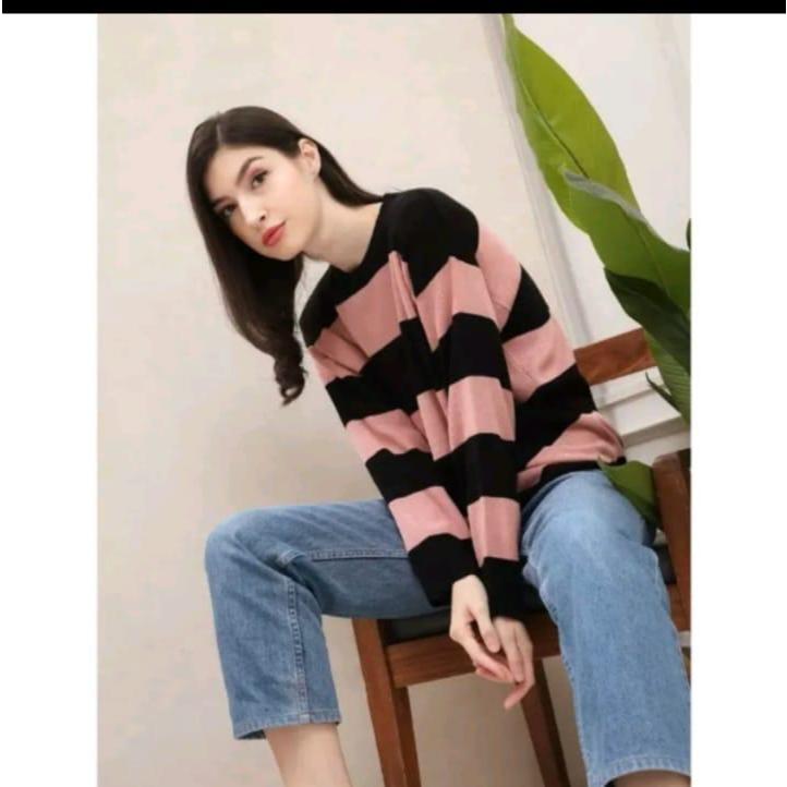 SWEATER EIRA JUMBO / BAJU RAJUT WANITA LENGAN PANJANG STRIP BLASTER / SIZE L,XL,XXL