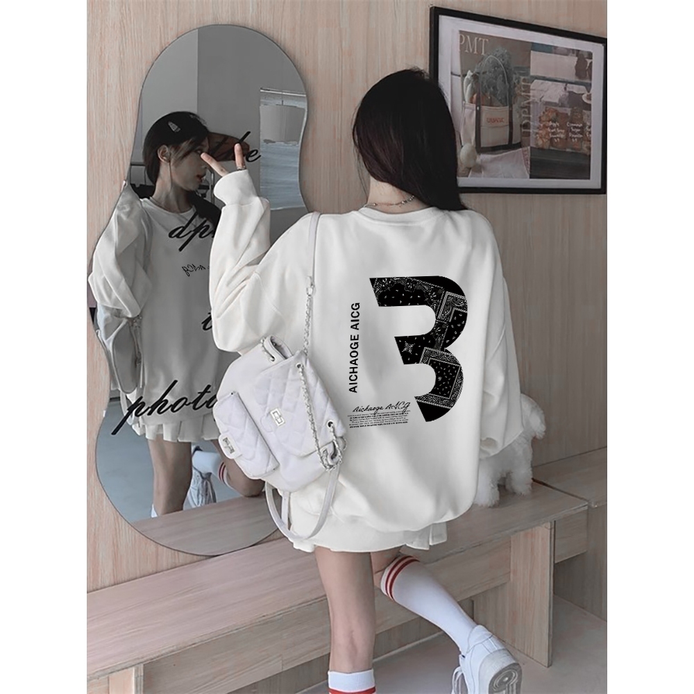 Sweater Oversize Wanita Lengan Panjang Versi Korea Cetakan Retro paisley pattern B letter print/Baju Sweater Wanita Kore