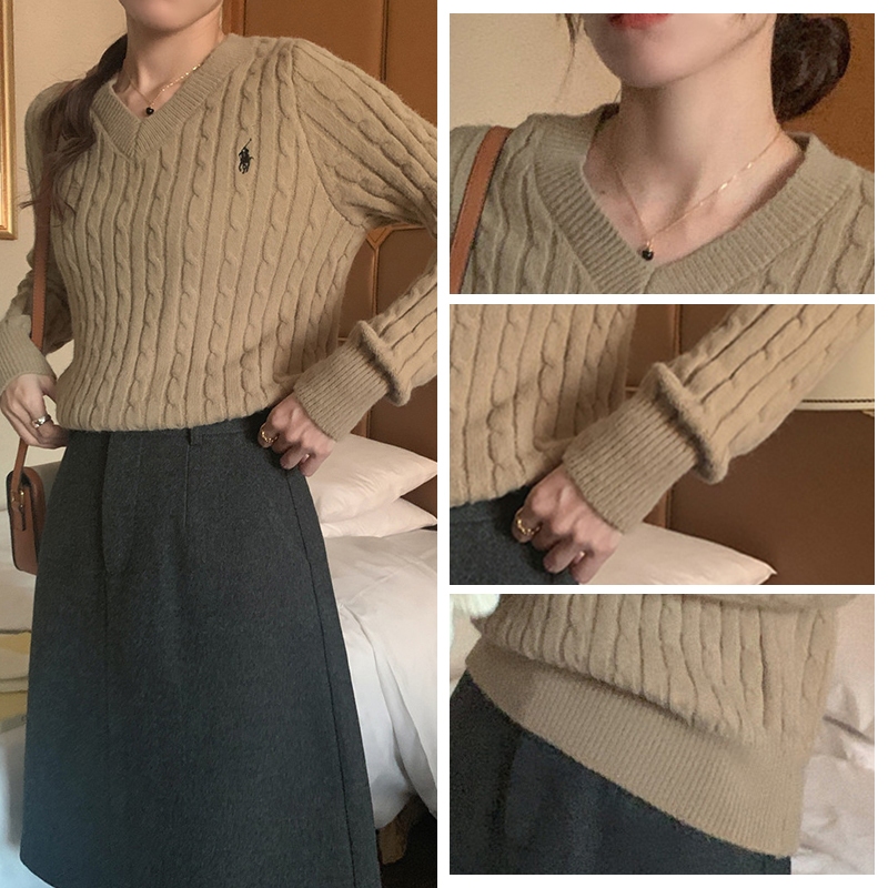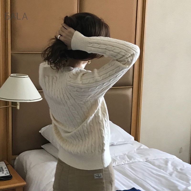 Sweater Wanita Korea Switer Rajut Wanita Polos Sweater Lucu V-Neck Knit Top Lengan Panjang Sweater Putih GA