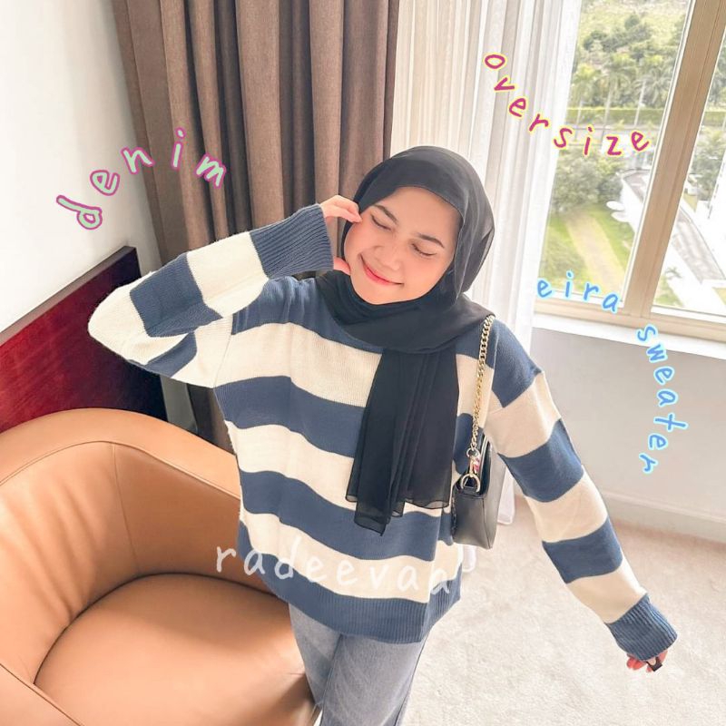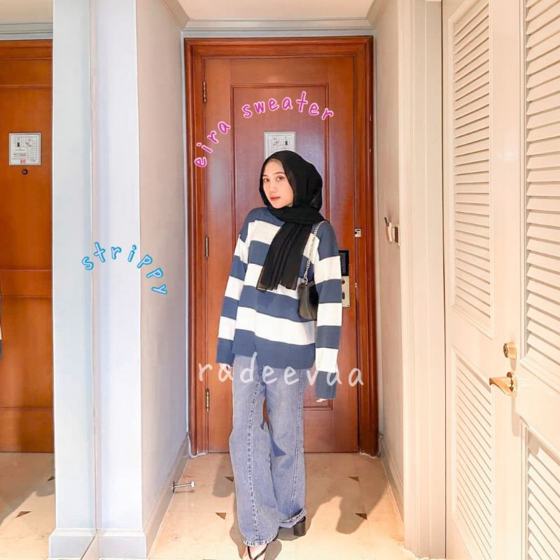 EIRA SWEATER STRIPE Knit Oversize Atasan Rajut Motif Garis Bahan Tebal Premium