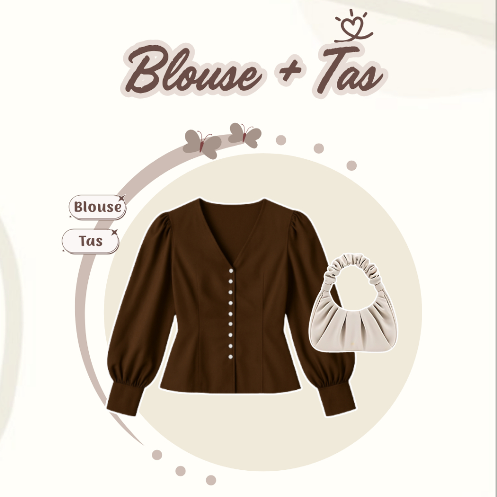 Dreamora _ one set 3in1 Korean Style Blouse Lengan Balon + Celana + Tas Bahu + Hijab DM053ND