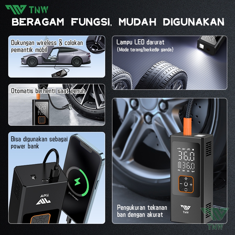 Pompa ban mobil TNW CI12 Pompa Ban Elektrik Mobil Mini Car Air Infatable Pump Portable 10000mAh LED Display