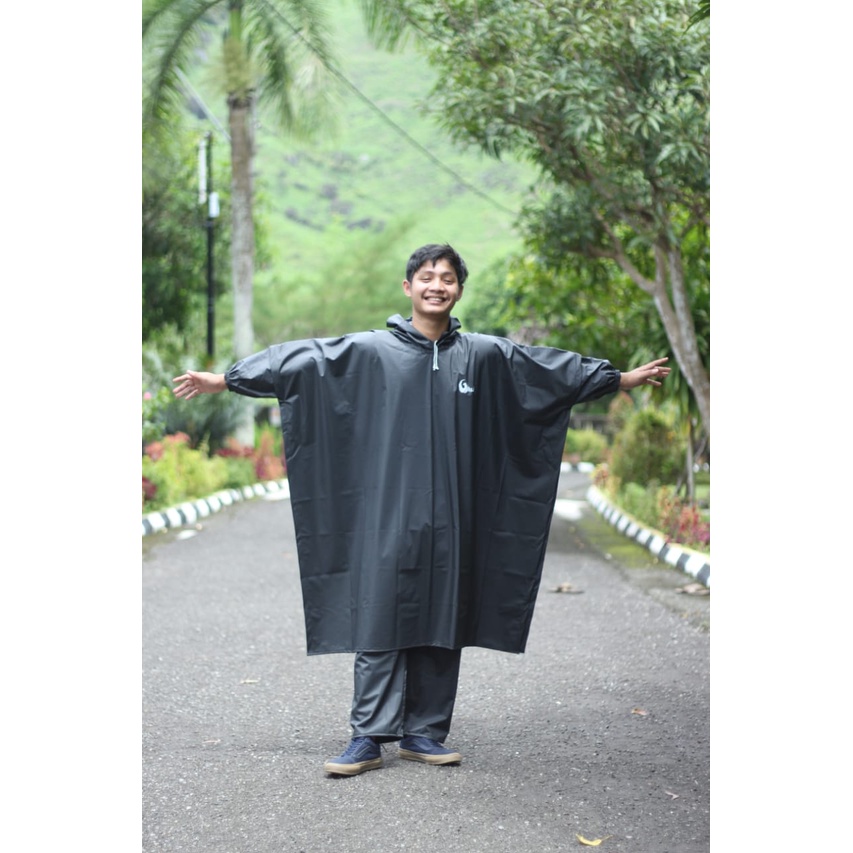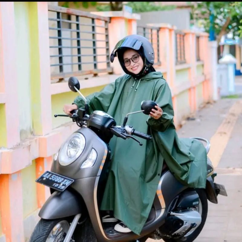 Jas Hujan Ponco Lengan Bahan Karet Anti Rembes Raincoat Motor