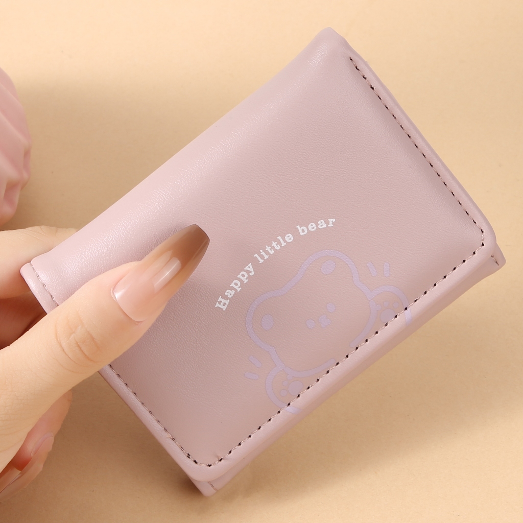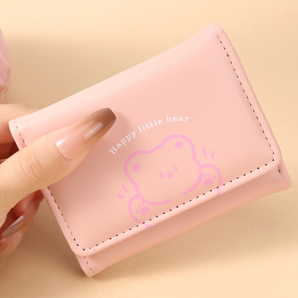 Dompet Lipat Wanita Happy Little Bear Korean Style Kartu Kulit PU