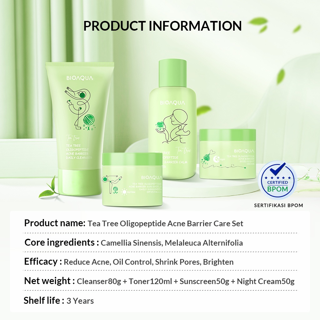 [My Bestie Official] BIOAQUA Milk Niacinamide Glowing & Brightening Tea Tree Acne Barrier Set | Skincare Anak | Kids Ski