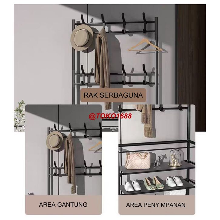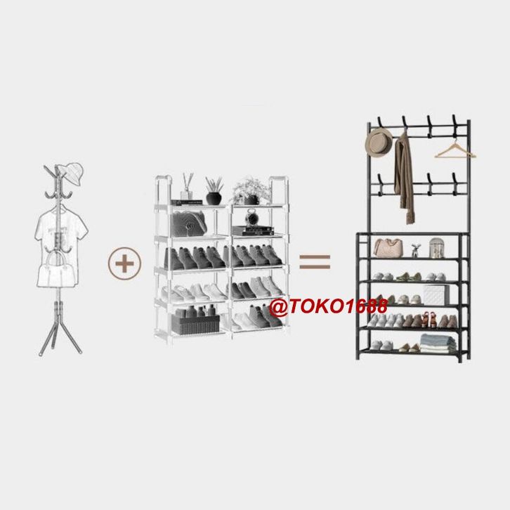 Rak sepatu portable Stand hanger Rak gantungan baju Tempat topi Hanger tas Rak penyimpanan susun