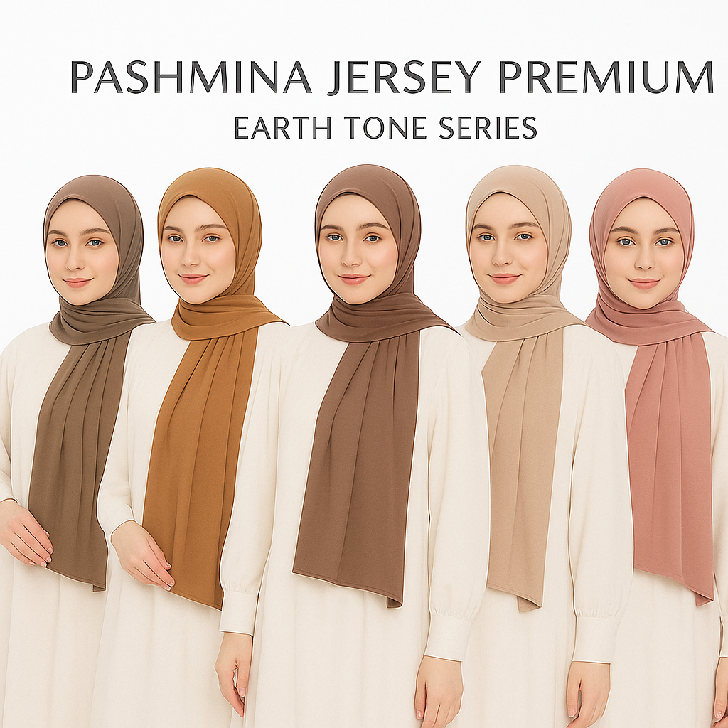 Paket 5 Pcs Pashmina Jersey Earth Tone – Hijab Premium Adem, Anti Licin, Tidak Nerawang