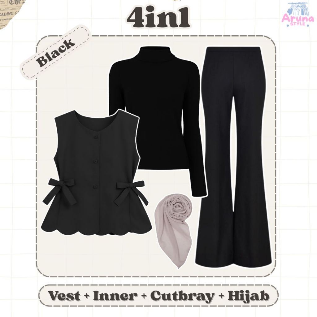 One Set Wanita Hang Kekinian Vest Cherish, Inner, Celana Cutbray Scuba, Bella Square Setelan Nongkrong Remaja Viral Masa Kini Casual AS6E