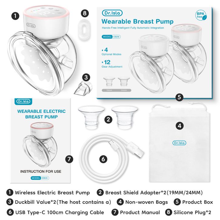 Dr.isla Pompa Asi Elektrik Handsfree 19mm 24mm 27mm Ibu Baru Breast Pump Pumping Asi Electric EB29