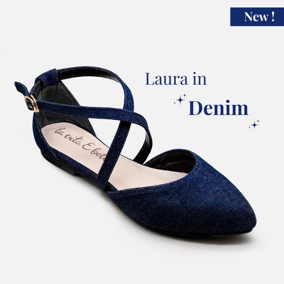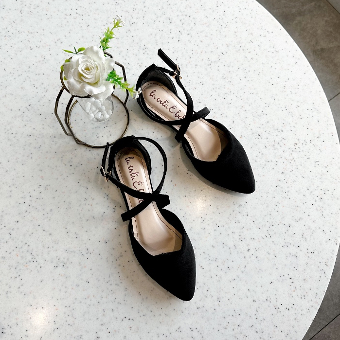 Sandal Flat Teplek Wanita Lv 514 Black La Vita E Bella Laura Crossed Strap