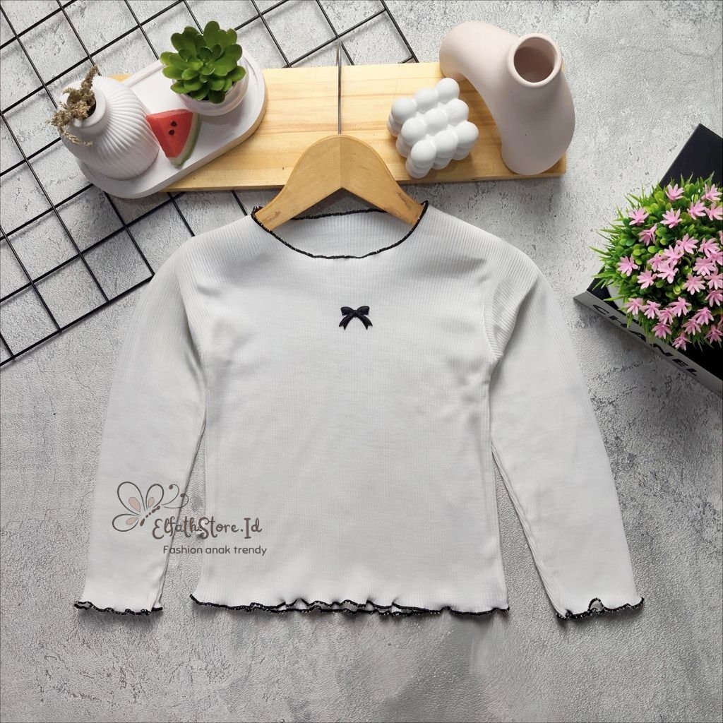 Baju Atasan Anak Perempuan 1-6 Tahun Motif Pita Lucu Bahan Rib Knite Premium