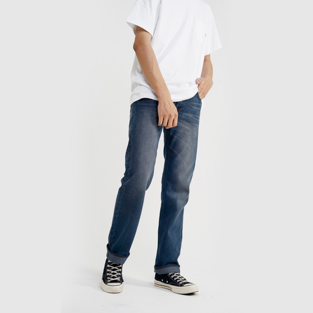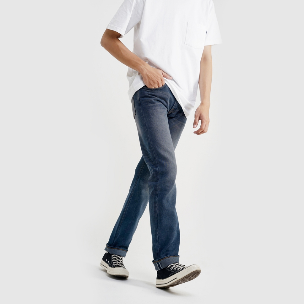 Volkvog Jeans Orleans Celana Panjang Washed Denim Pria Slim Straight Biru