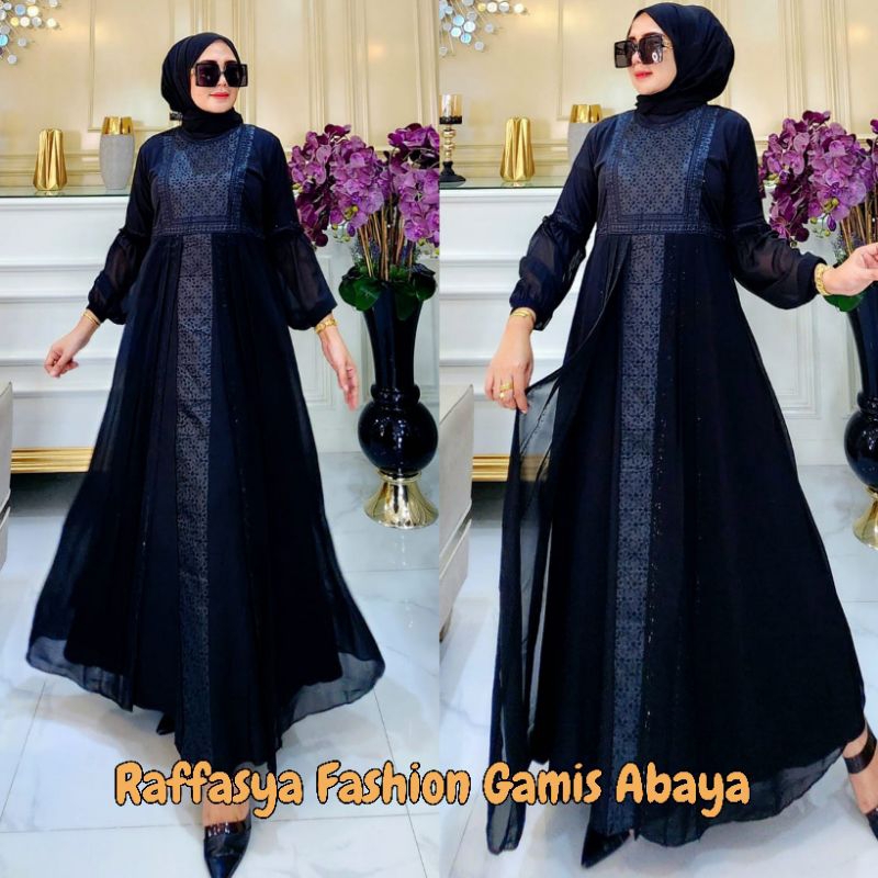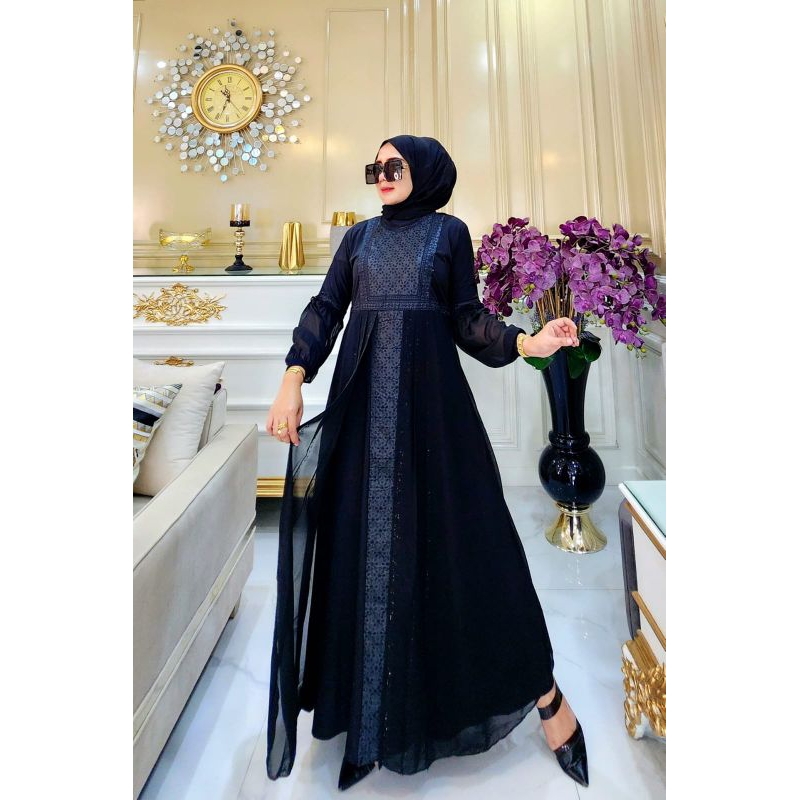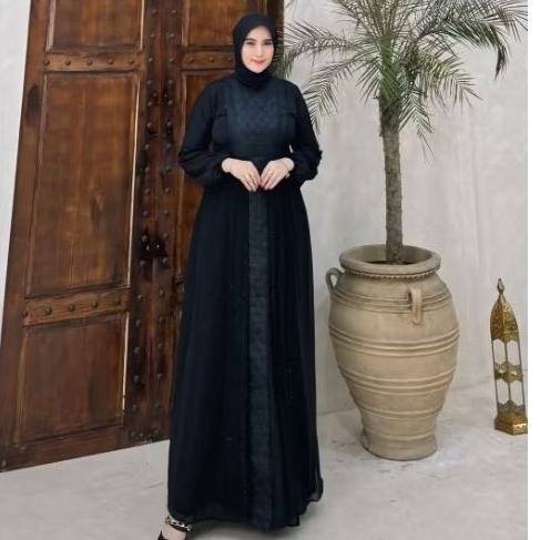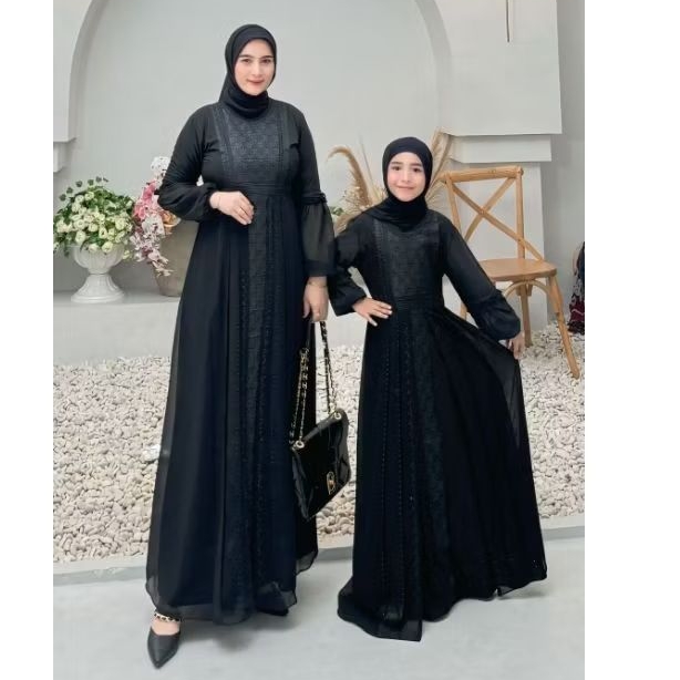 Gamis Abaya Turkey Couple Ibu Anak Motif Bordir Safira Full Hitam