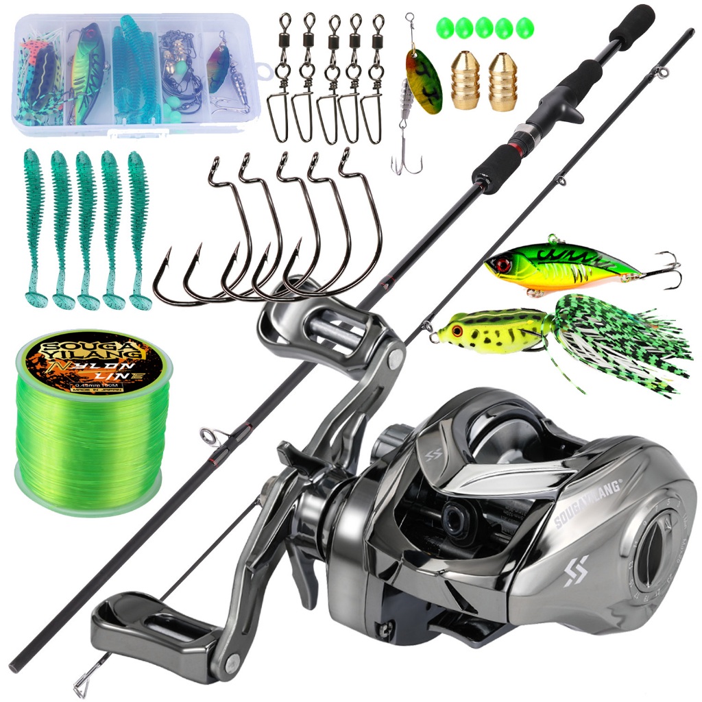 Joran Pancing Set Casting Fishing Rod Carbon Fiber 1.8/2.1m M Power and Baitcating Fishing Reel Metal Casting Reel 12+1b