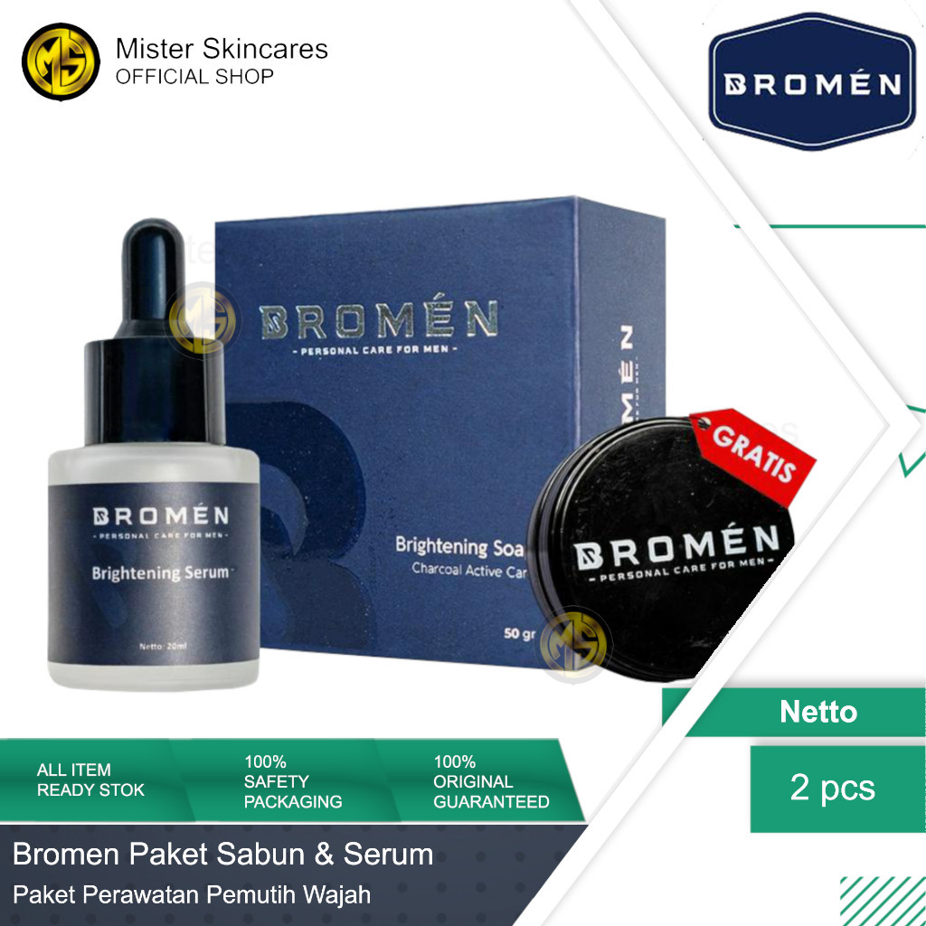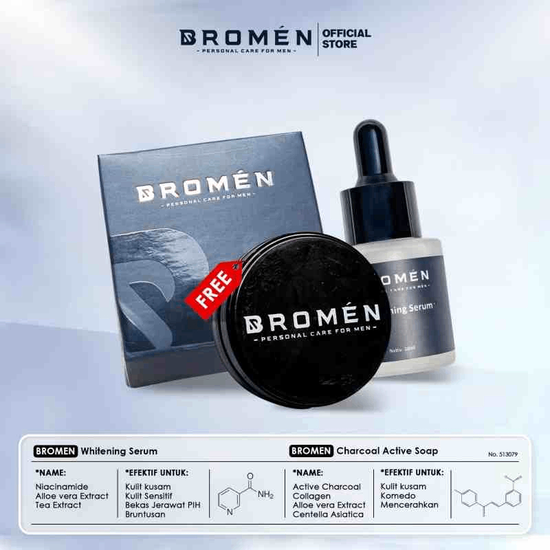 Bromen Sabun Kulit Berjerawat & Serum Wajah Penghilang Jerawat Paket Skincare Pria Pemutih Wajah