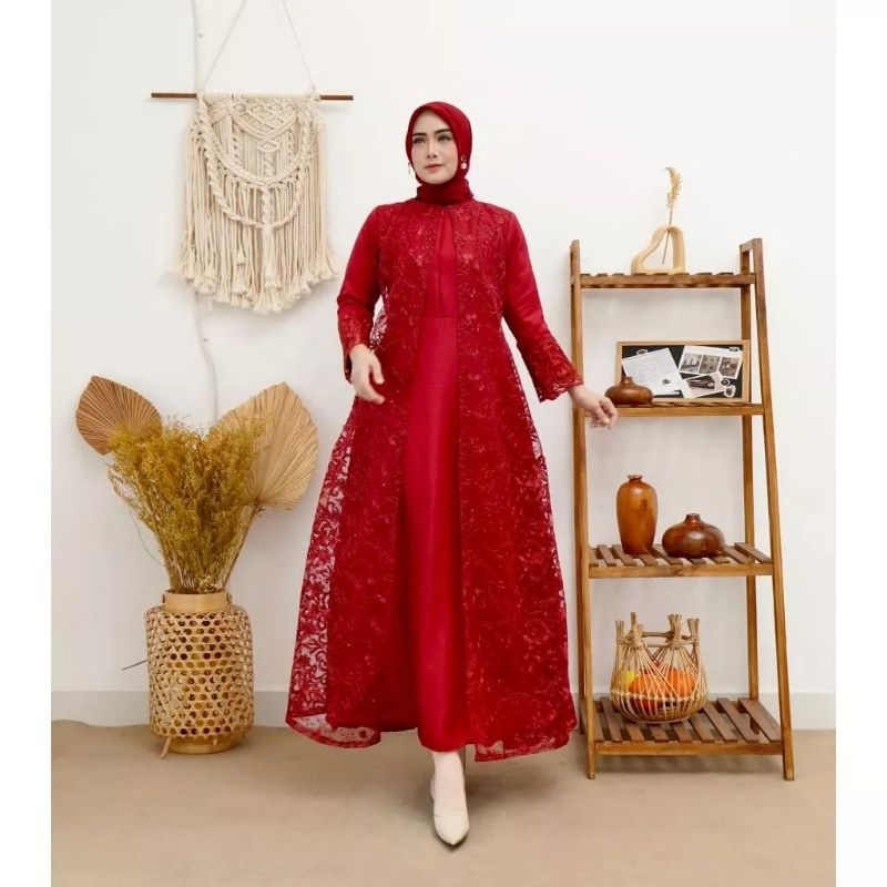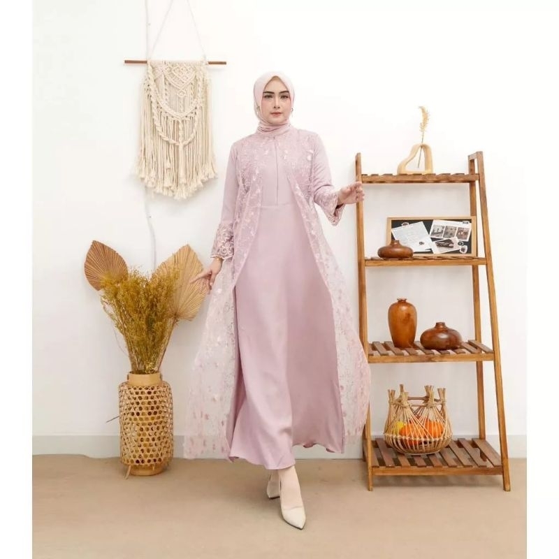 (Dijamin Realpict) Gamis Hena Busui TilLe Bordir Mutiara !! SIZE S M L XL XXL JUMBO BIGSIZE !! Maxi Dress Brukat Tulle B