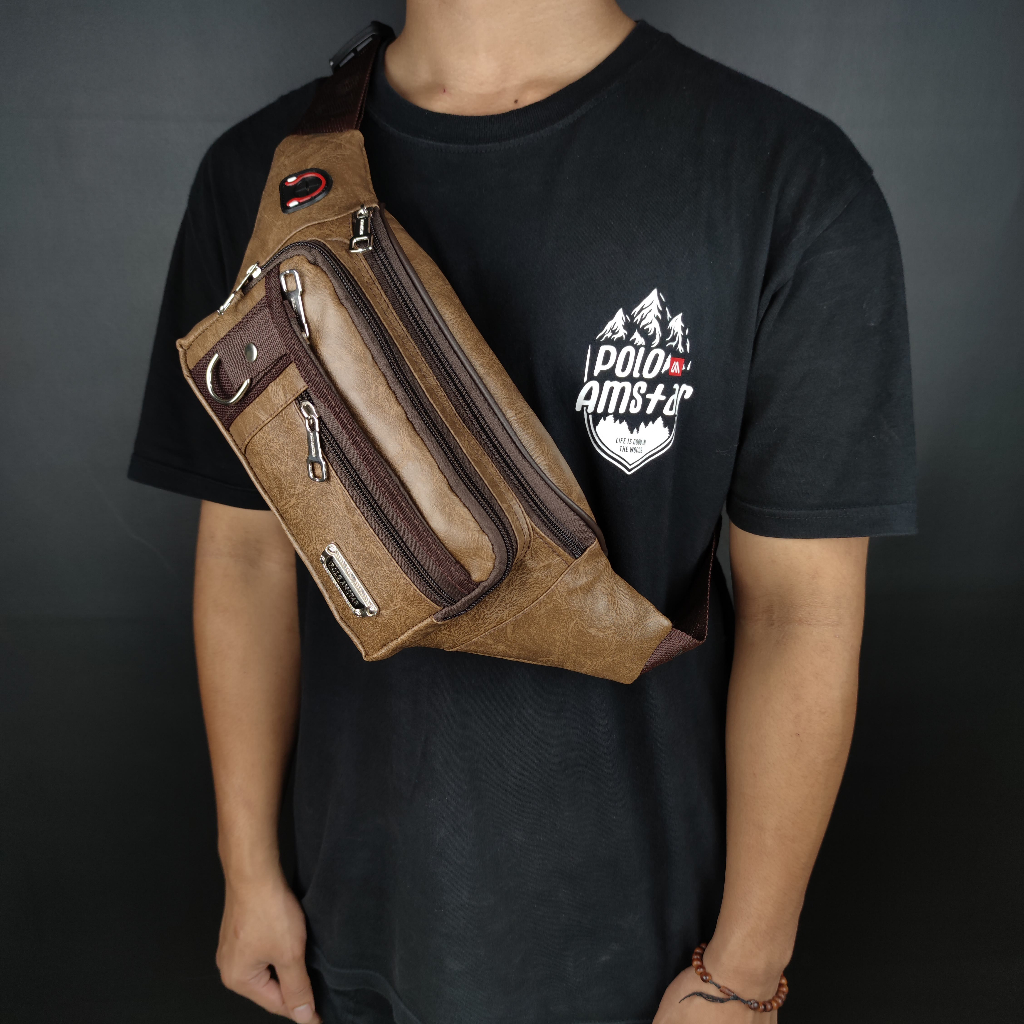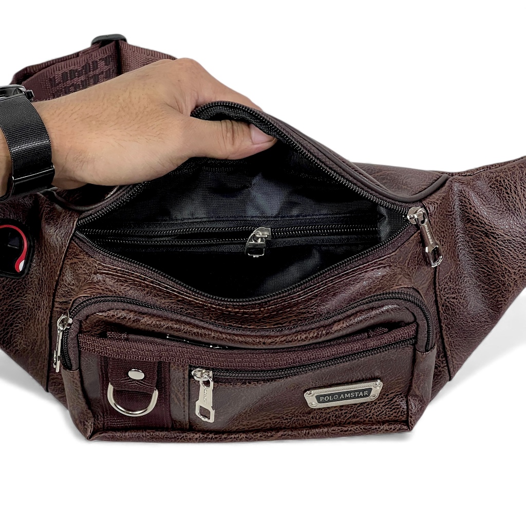 Tas Pria Wanita Waistbag Kulit PU Polo AMSTAR Tas Pinggang Selempang Bahu Terlaris