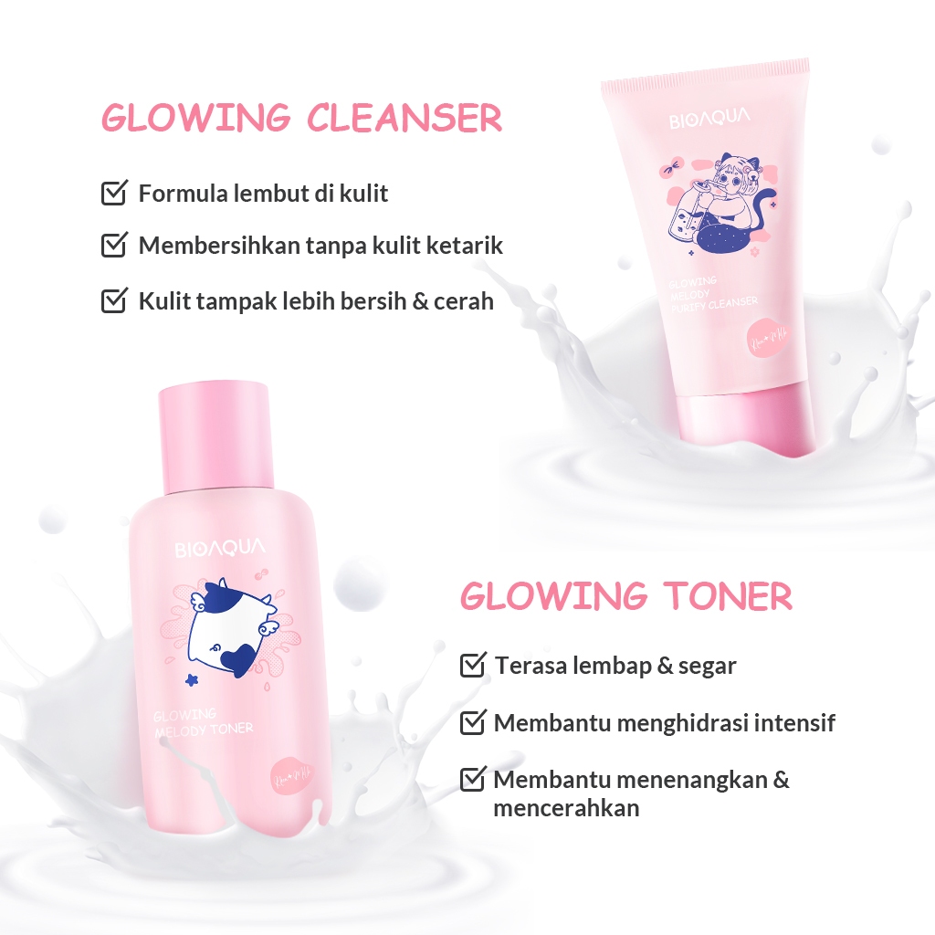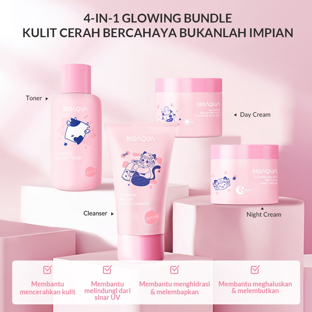 Bioaqua Cosmetics Skincare 1 Set Lengkap 4pcs Skincare Anak 12 Tahun Milk Niacinamide Glowing & Brightening Set dan Acne
