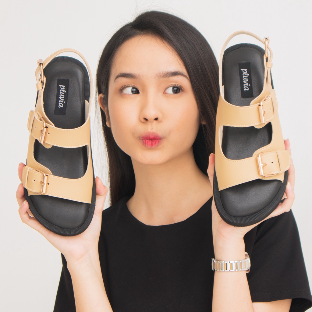 Pluvia Sivela Sandal Wanita Sendal Tali Belakang Platform Cewek Kekinian