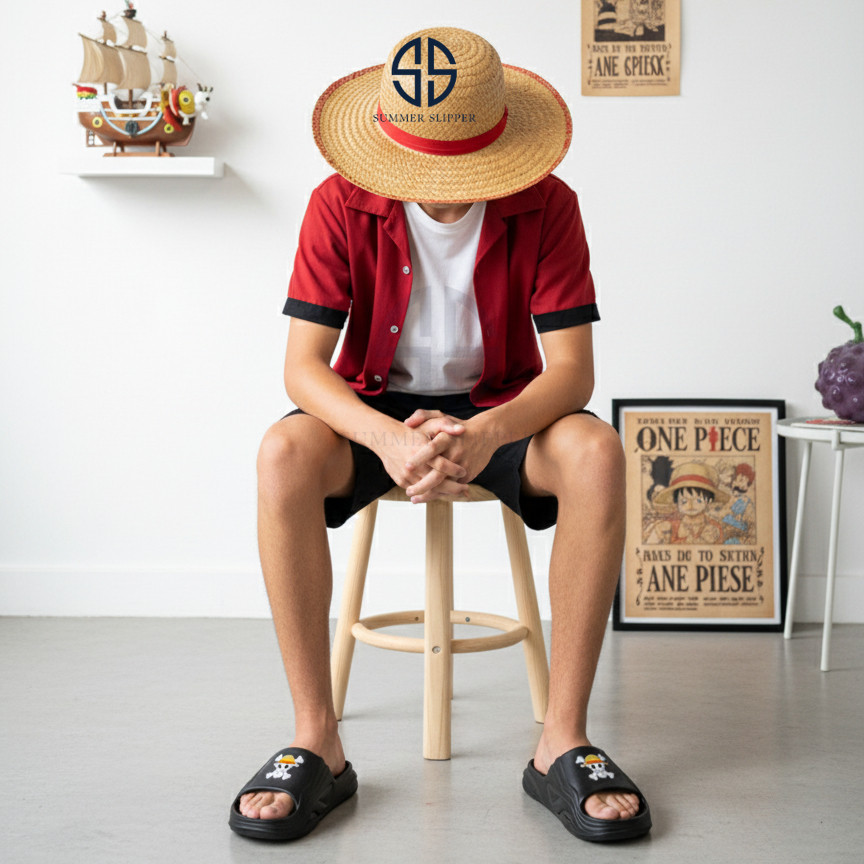 Sandal Selop Slip On Anak Cowok One Piece Luffy Topi Jerami Manga Anti Licin Size 24 40 Ss